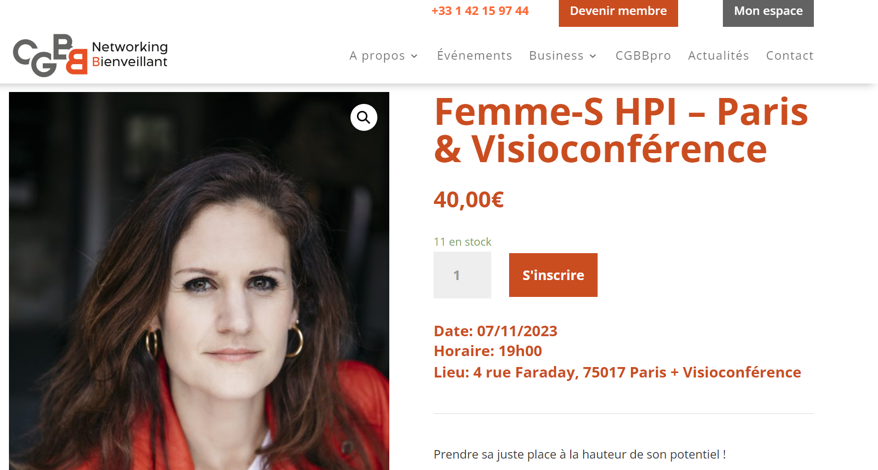 đ€le 7 novembre â ConfĂ©rence Les Femmes HPI avec le CGBB